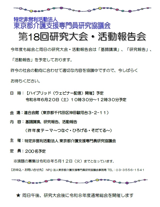 特定非営利活動法人 東京都介護支援専門員研究協議会事務局